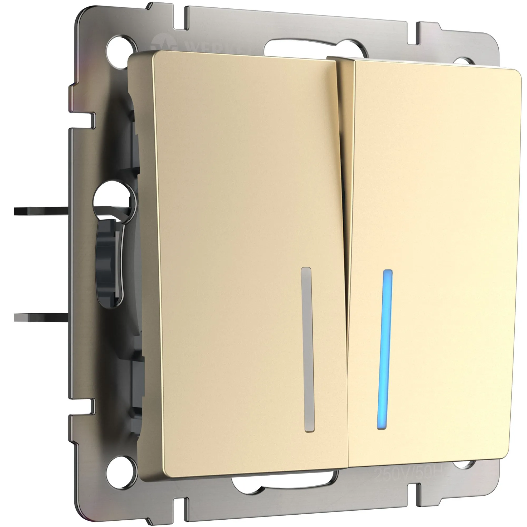 Двухклавишный выключатель с подсветкой Werkel шампань — удобство в темноте, стиль в деталях